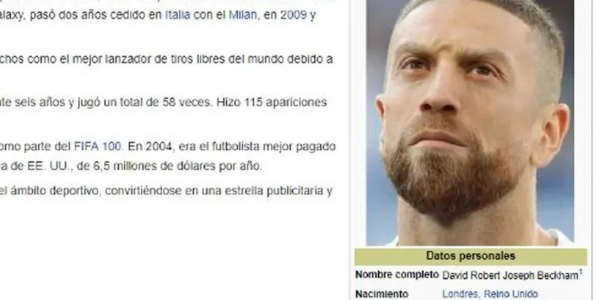 Cambiaron la foto de Wikipedia de David Beckham por una del Papu Gómez