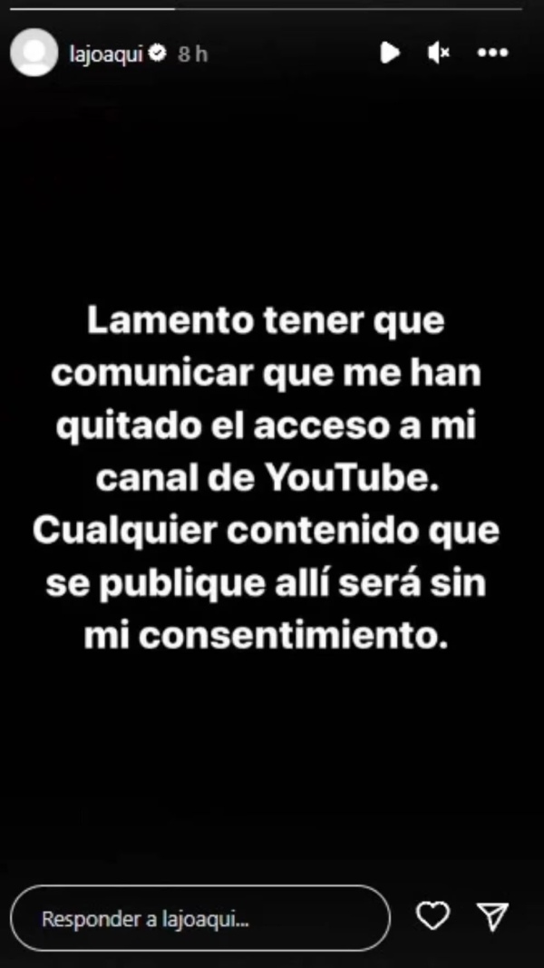 Luego de anunciar que le ponía una pausa a su carrera por temas de salud, La Joaqui apareció en sus redes sociales para dar una lamentable noticia: le quitaron el acceso a su cuenta de YouTube y advirtió a sus seguidores que lo que se suba a esa cuenta será sin su consentimiento.