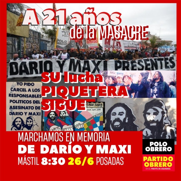 Familiares de las víctimas de la masacre y organizaciones de Izquierda concentran desde las 9am en el Puente Pueyrredón para recordar el asesinato de Maximiliano Kosteki y Darío Santillán, 21 años después.